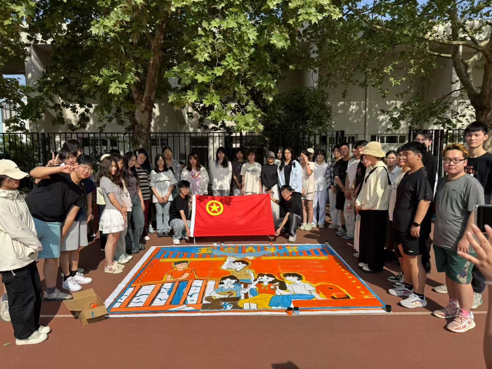 当三组绘画作品完成并拼合在一起时,一幅完整美丽的画卷展现在众人眼前。活动也在此时落下帷幕。阳光下的中苑操场,团旗招展,青春正好。青马班学员用镜头记录热血,用画笔描绘信念,用行动诠释着新时代青年的理想与追求,在五四精神的感召下,以地脉为纸、青春为笔,共筑时代新迹 。