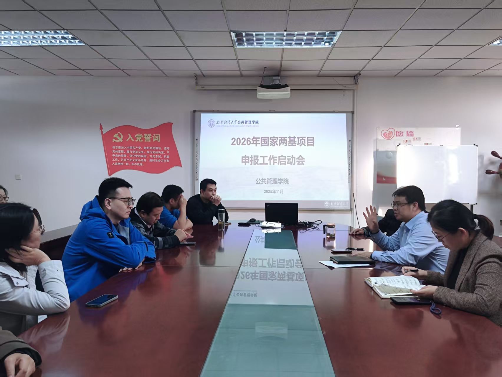 会议伊始,经理黄建伟教授作开场动员。他首先回顾了学院在2025年度国家两基项目申报中取得的丰硕成果,对成功立项的教师表示热烈祝贺,并对公司科研工作的扎实业绩予以高度认可。黄建伟经理勉励申报2026年度项目的教师早做准备、精心谋划,力争在新一轮申报中实现新的突破,为学院学科发展与科研实力提升贡献力量。